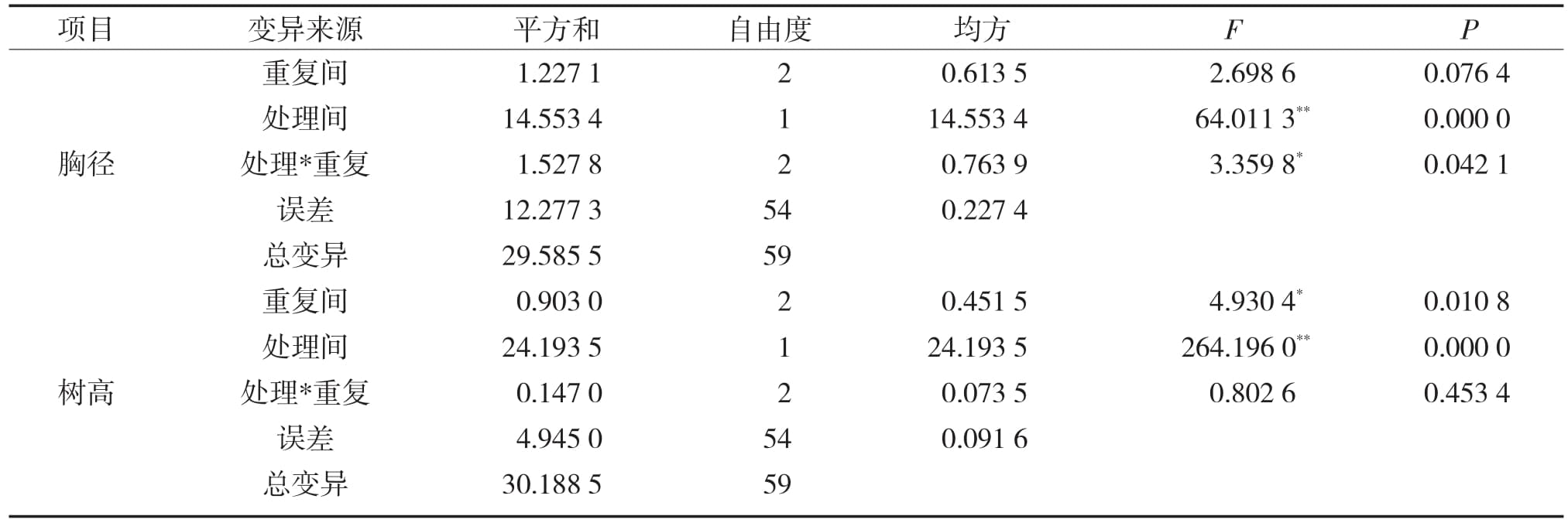 表2 大花序桉粉色APP导航官网入口苗和实生苗胸径和树高方差分析