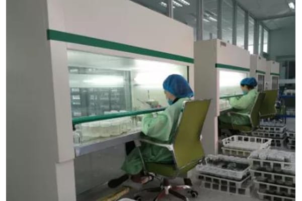 当瓶苗长到4~6片叶、植株高约4cm时可出瓶移栽。将瓶苗取出,置于清水中漂洗,洗去根部的培养基后,栽植于珍珠岩的基质中。小苗移栽后要经常给叶片喷水,为保证植物恢复生长所需养分,可在小苗移栽后用无机营养液或培养基的母液进行叶面施肥,每隔3d一次。若遇高温、光照强,还应搭盖遮阴网或罩薄膜。