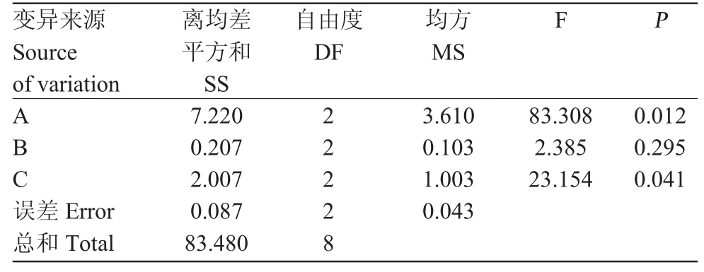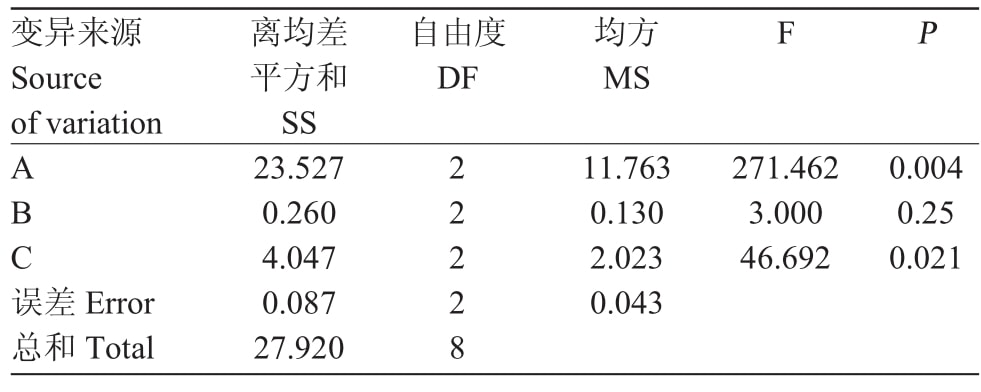 Tab.3 Orthogonal test results ofDendrobium officinale