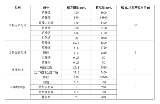 外植体采集与消毒:4月中旬,选择生长健壮、无病虫害植物的半木质去叶新梢作为外植体。将新梢剪成1cm-2cm的带腋芽茎段,按下列程序消毒:自来水下冲洗20min,之后转移至超净工作台上,先用75%的乙醇消毒30s,再用1%的次氯酸钠消毒10min,无菌水冲洗1遍后,用0.5%的次氯酸钠消毒10min〜13min,最后用无菌水冲洗3〜4遍...